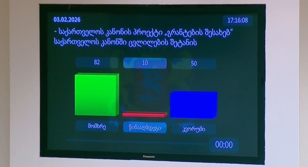 პარლამენტმა პირველი მოსმენით განიხილა და 82 ხმით, 10-ის წინააღმდეგ მხარი დაუჭირა „გრანტების შესახებ“ კანონში ცვლილებასა და საკანონმდებლო ცვლილებების პაკეტში შემავალ სხვა კანონპროექტებს.